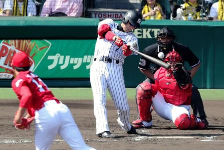 阪神・西岡が1点ビハインドの三回に同点適時打を放った。