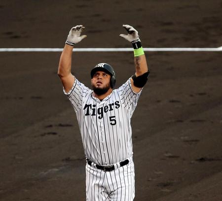 ゴメスが初回、先制5号2ランを放った。1死二塁から、イ・デウンの154キロを甲子園の右中間最深部に放り込んだ。