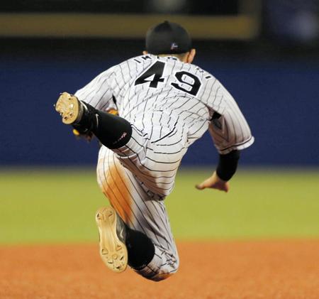 先発の岩崎の後を受け、安藤が登板した七回、2本の安打で2死一、二塁のピンチを迎えた。2番・川端の打席の5球目、鋭い打球が三遊間に飛んだが、三塁手の今成が横っ飛びしてボールをつかんだ。