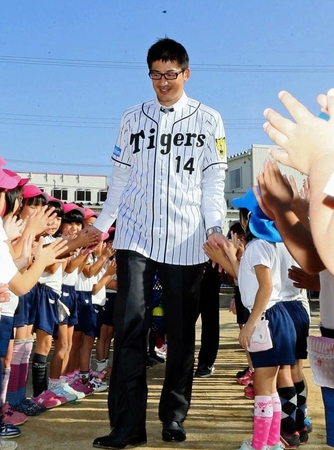 阪神・能見篤史投手(36)が15日、西宮市にある南甲子園幼稚園を訪問し、玩具を贈呈した。左腕は「今日はボールをプレゼントということで、幼稚園では遊ぶのも大切なので、このボールを使って遊んで欲しいと思います。僕からのクリスマスプレゼントみたいな感じなので、思いきり遊んでほしいです」とあいさつ。約30分、園児と一緒にボールで遊び、最後は園児から生歌をプレゼントされた。