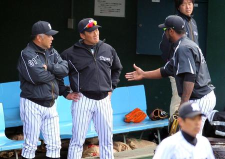 練習中には、左足内転筋を痛めていた島本浩也投手(22)に声をかける場面もあった。島本は「オープン戦でチャンスは回ってくると思うから、しっかりやっておけと言われた」と話した。
