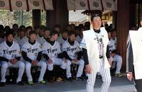 必勝を祈願し、柏手を打つ阪神・金本知憲監督=広田神社(撮影・高部洋祐)