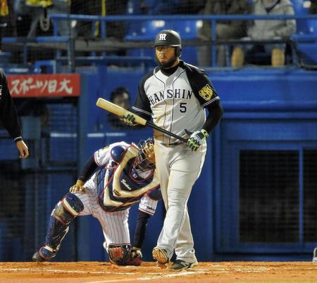 阪神の新外国人・ヘイグが七回、同点となる適時二塁打を放った。