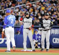4回、先制タイムリーを放った阪神・西岡=横浜
