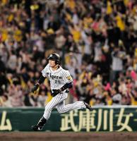 6回、勝ち越し二塁打を放つ阪神・江越大賀=甲子園