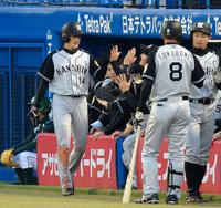 2回、大和の適時打で本塁へ走る北條=神宮(撮影・田中太一)