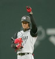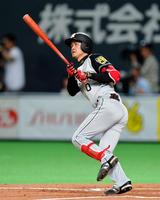 3回阪神無死一・二塁、左翼線に先制の2点適時二塁打を放つ阪神・大和=札幌ドーム(撮影・高部洋祐)
