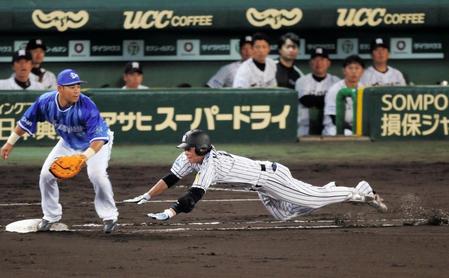 阪神・北條史也内野手がチーム初安打をマークした。五回までDeNA先発・久保にパーフェクトに封じられたが、六回先頭で遊撃へ内野安打を放った。一塁にヘッドスライディングし、闘争心を示した。