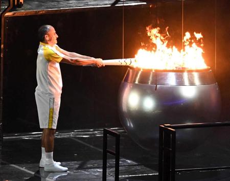 大歓声を浴びながら笑顔で階段を上り、特別な演出はないまま点火すると、夜空に花火が打ち上がった。アテネ大会から12年。当時もトラブルに巻き込まれた不満を口にせず「メダルが取れて幸せだ」と困難に立ち向かう強さを見せたランナーが再び輝いた。
