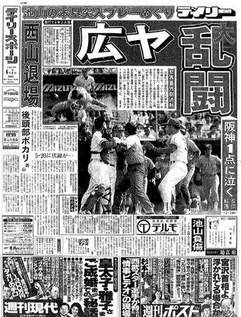 「広ヤ 大乱闘 西山退場 池山の本塁突入めぐり 後頭部ポカリ」