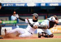 本塁クロスプレーが絵にならない…