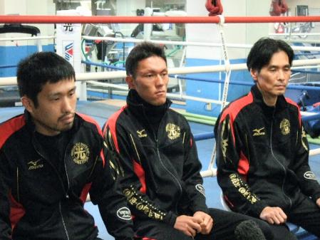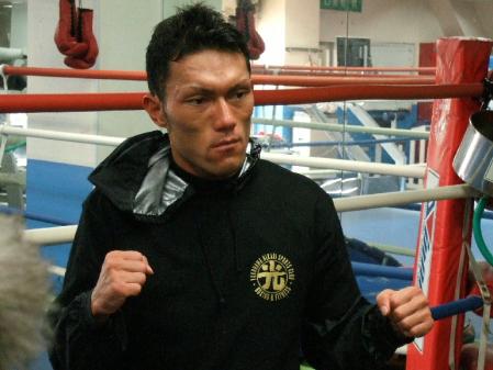 ミット打ちで鋭いパンチを繰り出す赤穂亮
