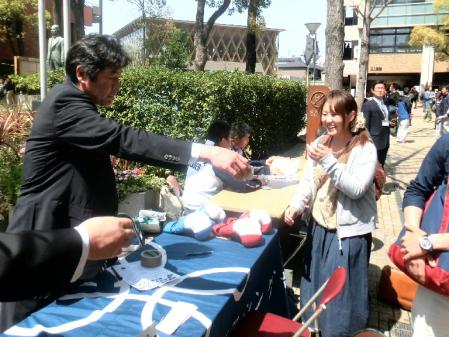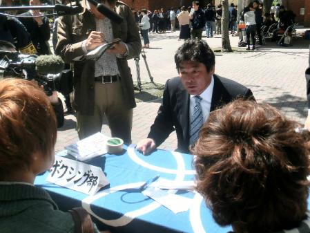 ステージからボクシング部への入部を呼びかける赤井総監督