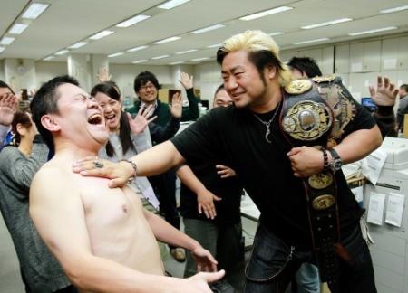 本社社員に強烈なチョップを放つ諏訪魔(撮影・辰巳直之)