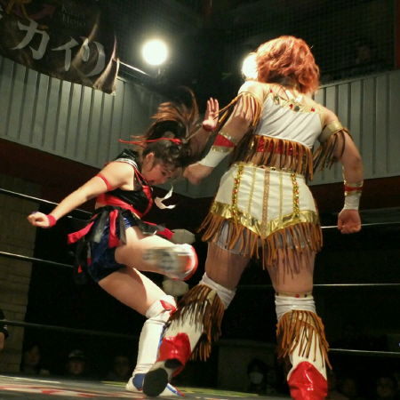 宝城カイリと組み、米山香織&コグマ組と激突。ひときわ大きな声援が飛ぶ中、得意の鋭いキックを連発し、パートナーをアシスト。現時点の予定では“ラスト大阪”となる一戦を白星で飾った。