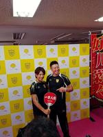 世界戦の発表会見を行った(左から)春木博志会長、野上真司氏、好川菜々、和泉修