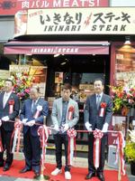 いきなり!ステーキのオープンイベントでテープカットを務めた長谷川穂積=神戸市内