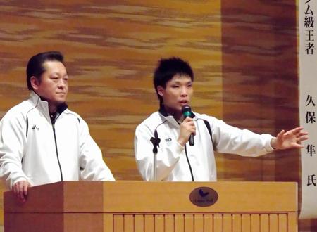 人生初の講演。ボクサーらしくなく「人前が苦手」という久保のために山下会長が持ち時間の半分以上を使ったが、師匠の心配は無用だった。久保は自らの挫折経験や尊敬するジムの先輩、3階級制覇王者の長谷川穂積氏の話を熱弁した。