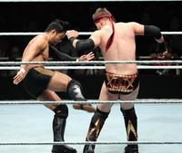 ザ・ミズ(右)に強烈なキックを決めるヒデオ・イタミ=両国国技館