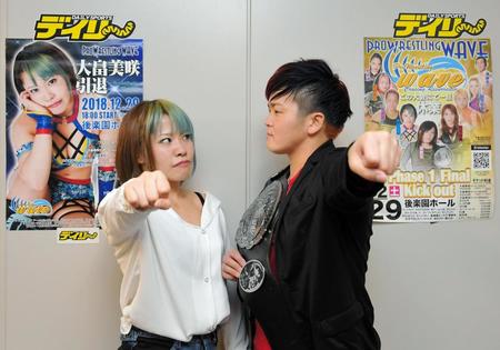 プロレスリングWAVEの12・29後楽園ホール大会で現役を引退する大畠美咲(29)が27日、最後の試合の相手を務めるWAVE認定王者・水波綾(30)を伴って東京・木場のデイリースポーツを訪れ、ラストマッチへの思いを語った。