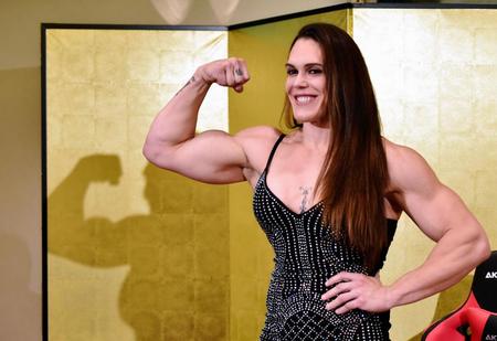 “霊長類ヒト科最強女子”と呼ばれながら、神取忍との対戦が予定されていた昨年大会では前日計量で前代未聞の12・7キロオーバーという体重超過で試合が中止となったギャビ・ガルシア(33)=ブラジル=は、筋骨隆々の肉体を誇示するような衣装で登場した。
