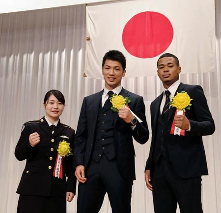 尚弥は前日にグアム合宿から無事に帰国したものの、この日になって発熱したという。また、技能賞を受賞したWBO世界スーパーフライ級王者の井岡一翔(30)=Reason大貴=も欠席し、受賞者を代表してスピーチを行った殊勲賞のWBA世界ミドル級王者の村田諒太(34)=帝拳=は「控室で尚弥も一翔もおらんから、お前がやってくれと言われました。LINEで尚弥と一翔には文句を言おうと思っています」とジョークで笑いを誘った。