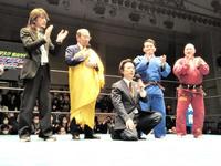 スーパー・タイガー、関本大介組を破った(右から)藤田和之、杉浦貴=後楽園ホール