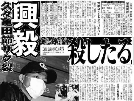 【2010年3月25日デイリースポーツ紙面】 興毅が“戦闘モード”に突入した。「これは戦争やで。殺したる!優しい気持ちでいたら、一生オレに勝てんよ」。殺気立った表情で感情をむき出しにした。(中略)ポンサクレックも負けてはいなかった。「どちらが強いか楽しみ。だが、ひきょうな手で勝つのは、女の腐ったヤツだ。自分はスポーツマンシップにのっとって戦う。カメダもスポーツマンシップにのっとって戦ってほしい」と、ぶった切った。ポンサクレックによると、6年前の04年2月にタイで興毅とスパーリングを行った時、リングマナーが悪かったという。「あちらからスパーリングを申し込んできたのに礼儀がなかった。彼がタイの若者だったら殴っていたところだ」。