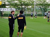 サポーターが用意した横断幕の前で練習する浦和の選手たち