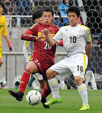 今大会7得点のエースのFW飯島陸が、マンマークにつかれていた流通経済大柏(千葉)のDF三本木の懸命なプレーを崩せずにいた。後半ロスタイムにエリア内でボールを受けシュート。これも三本木に体でブロックされたが、そのこぼれ球をFW榎本が蹴り込んだ。
