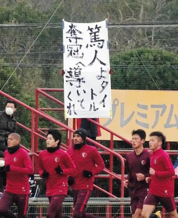 寒空の下で平日にもかかわらず多数のサポーターが来訪。「篤人よタイトル奪還へ導いてくれ」と記した幟(のぼり)を掲げて、復帰を歓迎し、期待していた。