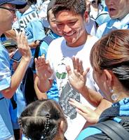 磐田に移籍したFW大久保が、川崎のファン感謝デーであいさつ