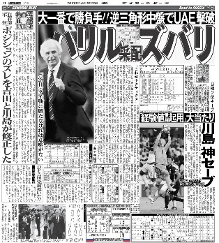 相手司令塔のO・アブドゥルラフマン封じは、全体ミーティングでも「守備面では(全体戦術の)80%か90%ほど(の割合で)監督が強調していた」(西野技術委員長)というほど重要なタスク。司令塔を完全に抑え込み、ハリルホジッチ監督も「ほぼ完璧な試合をしてくれた」と最大級の賛辞を贈った。「荷が重かった」という長谷部の17番を背負い、魂の90分間を終えた今野は「勝ち点3を持って帰ることが大事だと思っていたので100点満点」と笑った。