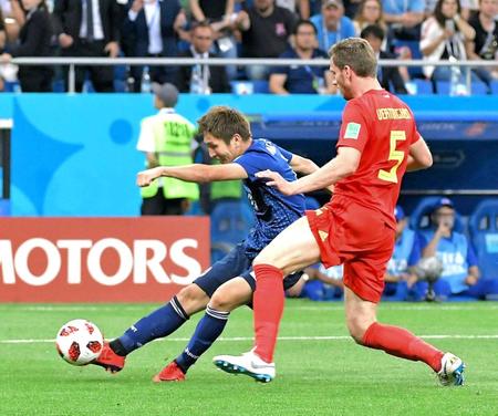 「ロシアW杯・1回戦、ベルギー3-2日本」(2日、ロストフナドヌー) サッカーのW杯ロシア大会を戦う日本代表は2日(日本時間3日未明)、史上初の8強入りをかけて優勝候補のベルギーと対戦して2-3で敗れた。後半にMF原口元気(27)=ハノーバー、MF乾貴士(30)=ベティス=のゴールで2点を先行も、3失点を喫して逆転負けを喫した。