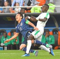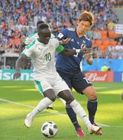 前半、指示を出す西野監督。右は長友(撮影・堀内翔)