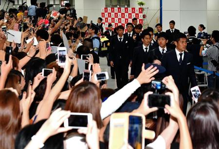 サッカーW杯ロシア大会で2大会ぶりにベスト16入りした日本代表が5日午前、成田空港着の航空機で帰国した。報道陣250人、ファンや関係者800人と、約1000人が出迎える大フィーバー。大会前の低評価を覆して熱い戦いを繰り広げた日本代表に心を揺さぶられたサポーターが多く駆けつけた。