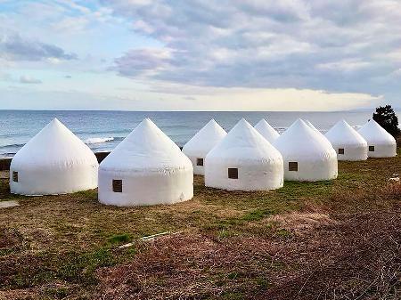 名古屋工業大の北川啓介教授が開発。床面積約20平方mの円柱形で、外壁となる防炎シートを空気で膨らませ、内側から人体に無害な発泡ウレタンを吹き付けて設営する。断熱性が高く、積雪や強風にも耐えるという。材料はスーツケースで運搬できるため、名古屋工業大に備蓄し災害時に被災地へ配送する。