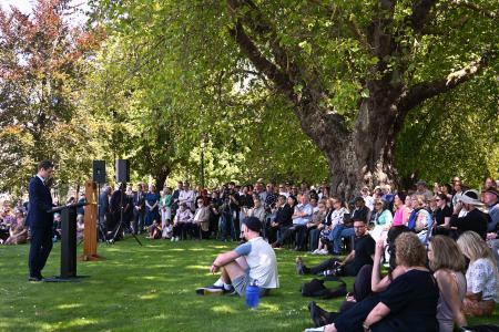 【クライストチャーチ共同】日本人28人を含む計185人が死亡したニュージーランド地震は22日、発生から15年となった。被災地の南島クライストチャーチの国立追悼施設で市主催の追悼式が開かれ、地震があった午後0時51分(日本時間午前8時51分)に黙とう。鐘を鳴らして犠牲者の名前を読み上げた。