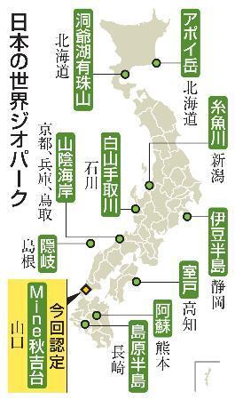 国連教育科学文化機関(ユネスコ)は23日、パリで執行委員会を開き、貴重な地形や地質を持つ自然公園「世界ジオパーク」に、日本最大級のカルスト台地で知られる「Mine(みね)秋吉台」(山口県美祢市)を認定した。国内の世界ジオパーク認定は2023年の「白山手取川」(石川県白山市)以来、11地域目。教育活動や観光、地域振興への活用が期待される。