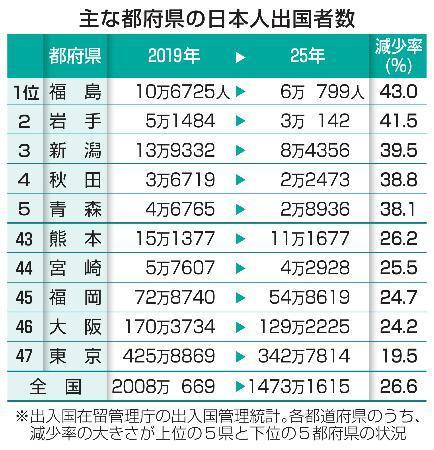日本人出国者、コロナ禍前の7割 25年、全都道府県で下回る
