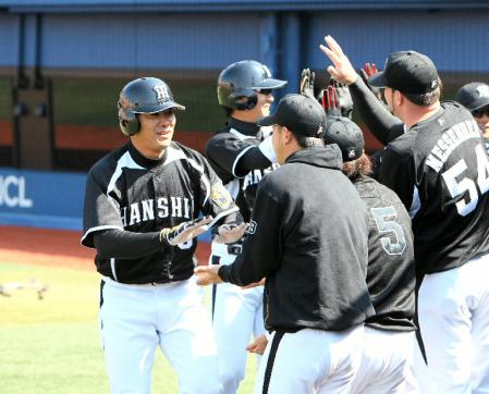 1回阪神1死一塁、福留孝介は右中間に2ランホーマーを放つ=横浜スタジアム(撮影・金田祐二)