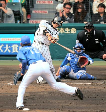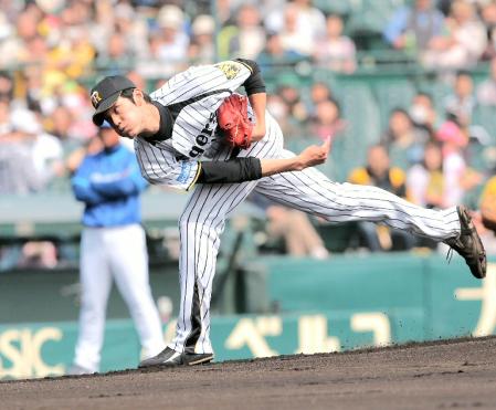 藤浪(左)の「必死のパッチで…」の決めぜりふに大爆笑する西岡(撮影・棚橋慶太)