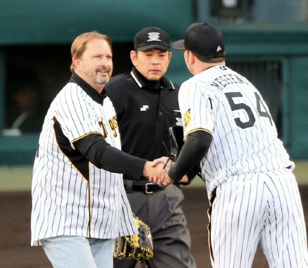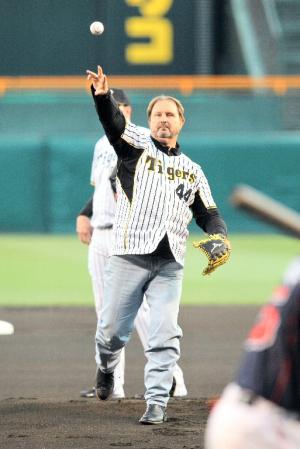 始球式に登板したバース氏はスタンドに手を振り聖地のマウンドへ向かう=甲子園(撮影・飯室逸平)