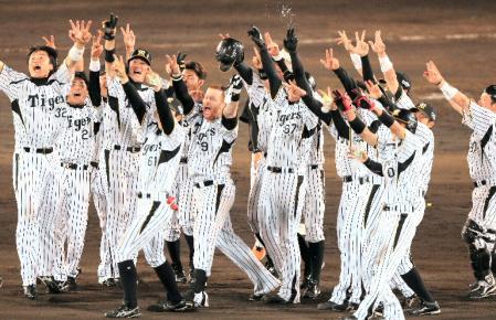 9回、サヨナラ打を放ったマートンを祝福する阪神ナイン(撮影・棚橋慶太)