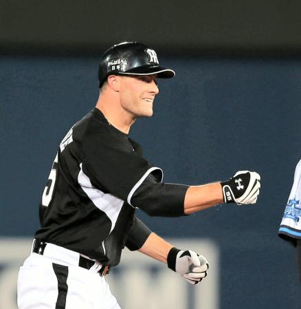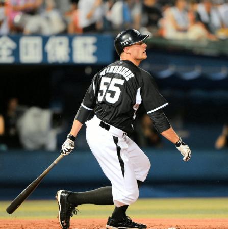 2回、右越えに先制2点二塁打を放ったスタンリッジ=横浜スタジアム(撮影・園田高夫)
