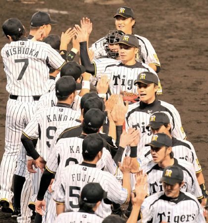 お立ち台で声援に応える鳥谷(撮影・田中太一)