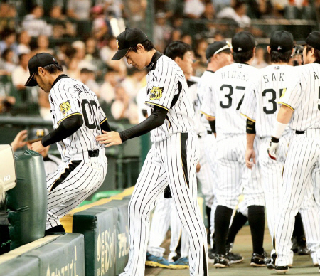 9回阪神2死一、三塁、新井貴浩の補邪飛で試合終了(捕手中日・谷繁元信)=甲子園(撮影・山口登)