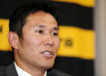 久保とのFA交渉を終え報道陣の質問に答える阪神・中村GM=西宮市内の球団事務所(撮影・山口 登)