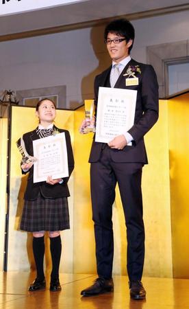 関西運動記者クラブが選定する「第59回関西スポーツ賞」の特別賞に選出された阪神・藤浪晋太郎投手(21)が18日、大阪市内で行われた表彰式に出席。同じ受賞者で、105歳の現役陸上選手・宮崎秀吉(ひできち)さんに驚がくした。