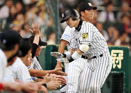 阪神が6点を追う五回2死、途中出場の原口の7号ソロで反撃した。